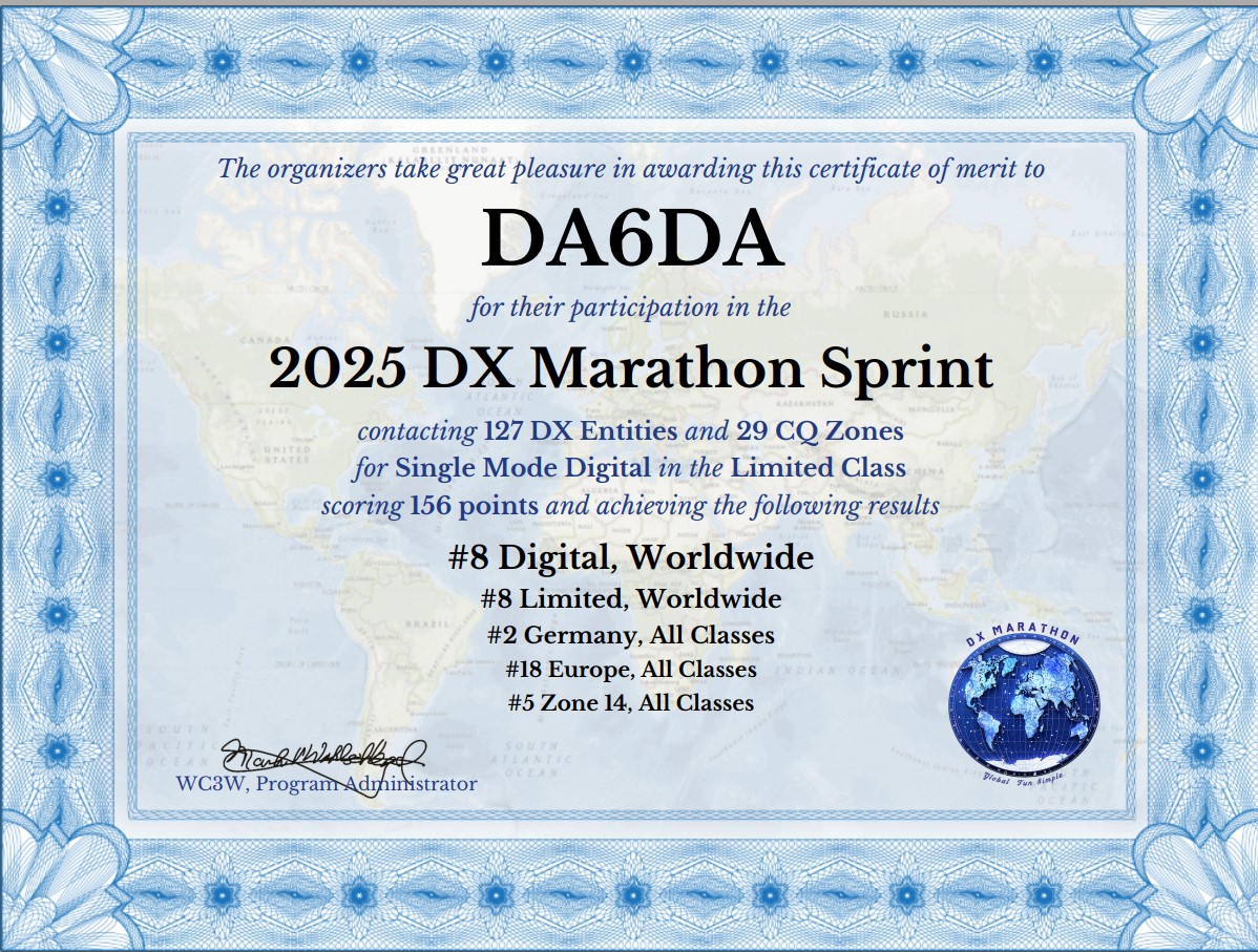 2025 DX Marathon Sprint – Andy, DA6DA von Z25 erreicht Spitzenplätze