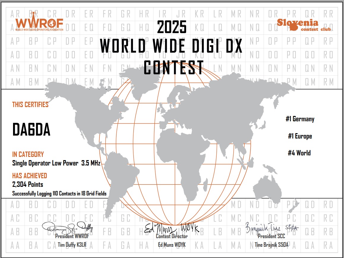 Andy – DA6DA verteidigt seine Spitzenplatzierungen #1 Europa und #1 Deutschland aus